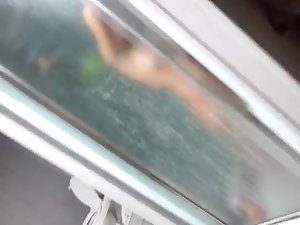 girlfriends mom taking a shower, what a milf!