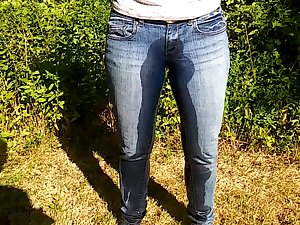 Kat getting the perfect piss stream going while on display outdoors